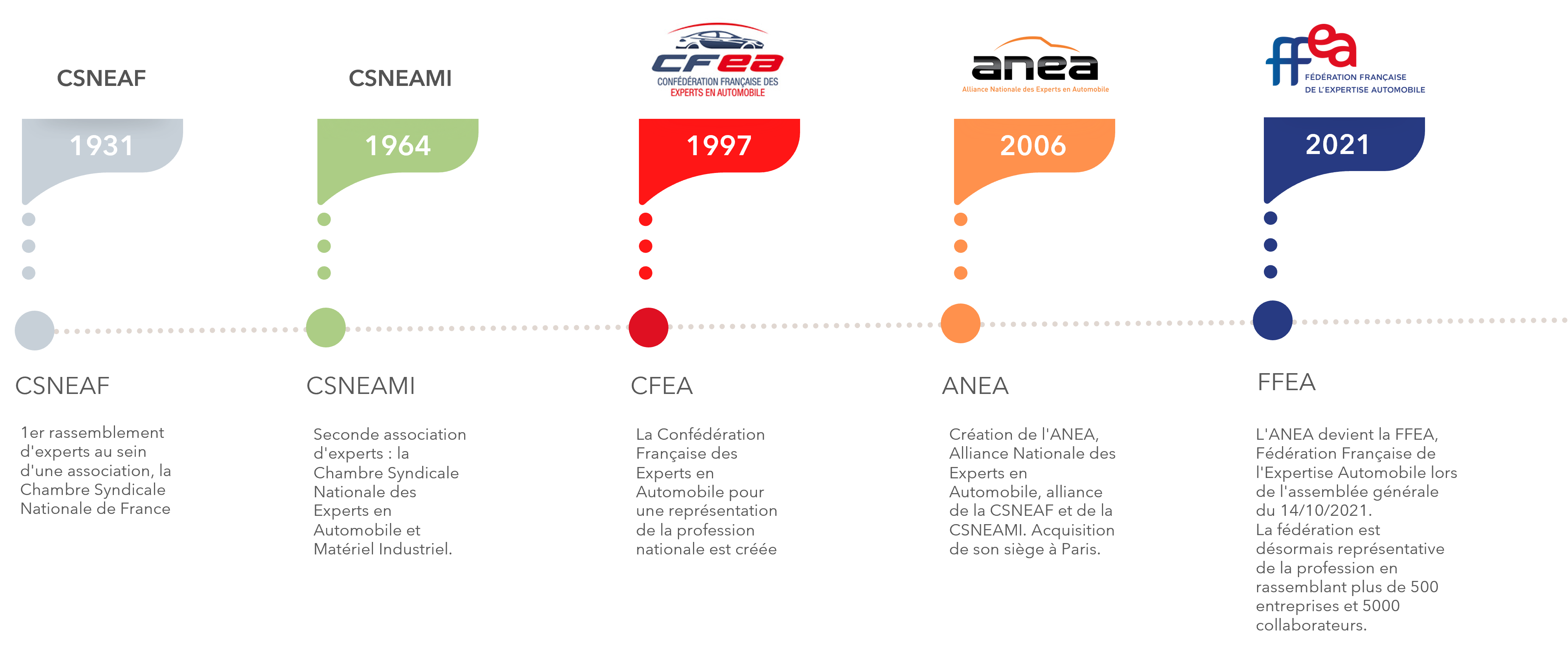 L’appellation FFEA, Fédération française de l’expertise automobile, remplace depuis le 14 octobre 2021 celle de ANEA, Alliance nationale des experts en automobile, qui avait elle-même regroupé en 2006 la CSNEAF et la CSNEAMI.